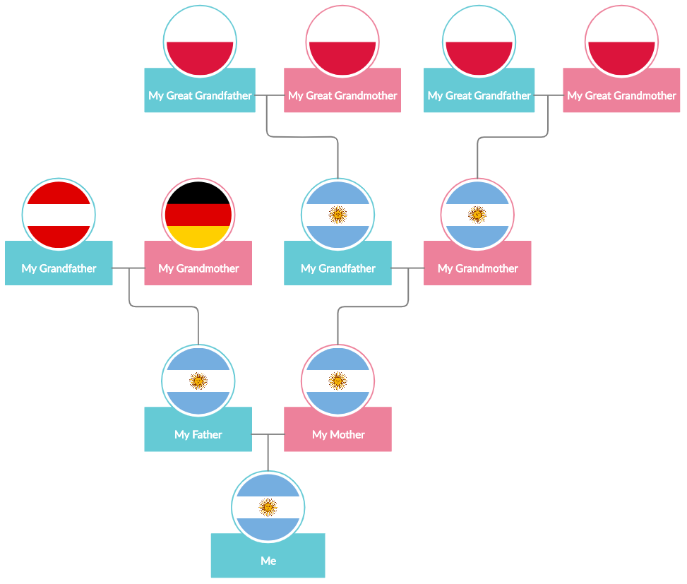 Yeah… even I find it confusing sometimes. And that description isn’t even that accurate. Below you’ll find a very simplified family tree showing the birthplace of my parents, my grandparents and (some of) my great grandparents. The history of my family is an extremely interesting and complex one. The chart below is just the tip of the iceberg.